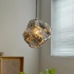 DEMILA ペンダントライトは、ダクトレール・引掛けシーリング両対応の北欧デザイン。岩石形のガラスシェードがモダンでかわいい印象。直径20cm、ダイニングやキッチンに最適なスタイリッシュな照明です。