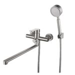 シャワー付きバス蛇口は、温冷水を供給する便利なノズルが特徴。簡単に取り付け可能な壁掛けタイプで、圧迫感のないデザイン。キッチンやバスルームでの使用に最適なスプレーガンセット。
