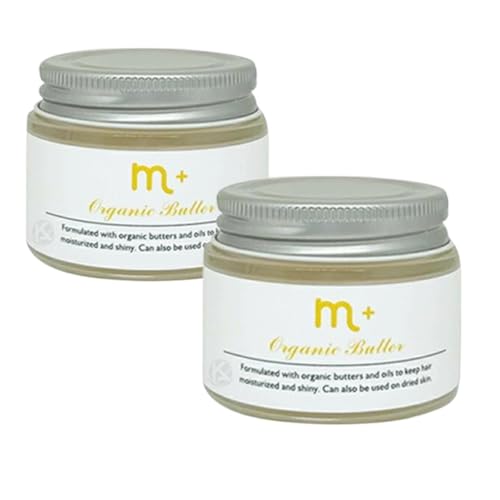 m+ エムプラス オーガニックバター 50gは、髪に潤いとツヤを与える保湿オイルです。ヘアスタイリングやハンドクリームとしても使用可能。キンモクセイの香りで、KAJKKH-STOREのオリジナルロゴ商品です。