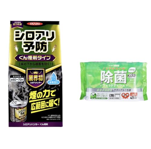 くん煙タイプの害虫対策剤と除菌ウェットティッシュの2点セット。害虫駆除と衛生対策に最適。ノンアルコールティッシュで手指も清潔に保てます。家庭用、業務用として便利で、外出時にもおすすめ。