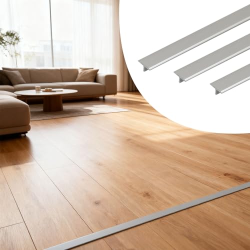 MATSURIAのアルミ床見切り材は、幅6mm、厚み4mm、長さ900mmのT型タイプ。3本組で、おしゃれなデザインが特徴。床材のエッジを保護し、DIYやリフォームに最適な内装資材です。グレーの色合いで、住宅や店舗、オフィスに適しています。