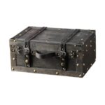 GEGEBOMTXO レトロな木製キャビネット アンティーク調の収納箱木製 アンティークスタイルのポータブル収納ボックス 長方形の革製ハンドル 強力な耐荷重性 真鍮製バックル 頑丈で耐久性があり 壊れにくく 厚くて防塵 (スタイル1-グレー,L)の高価買取