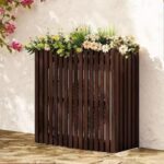 ZorTeryのエアコン室外機カバーは、木製ラック付きで花台やプランターとしても使える多機能アイテムです。天然木製でおしゃれな北欧デザイン、通気性と耐久性に優れています。組み立て簡単、分解・保管も容易。サイズは85*35*80cm、色はブラウンです。