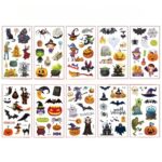 ハロウィン タトゥーシール 10種セット A。フェイスやボディに使用可能で、光るデザインが特徴。簡単に貼付できる仮装やコスプレに最適、NYANDELMO製品です。