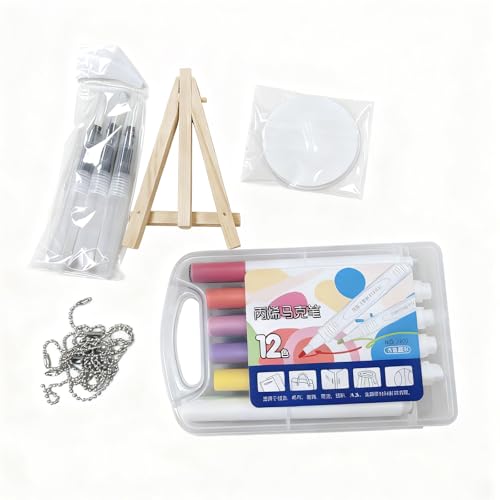 マジックパフィーペイントとスポンジペーパーを使ったDIY材料キット。36点セットで、水で膨らむ紙10枚、アクリルマーカー12本、水筆3本、イーゼル1個、パールネックレス10個が含まれています。子供の工作や夏休みのプレゼントに最適!
