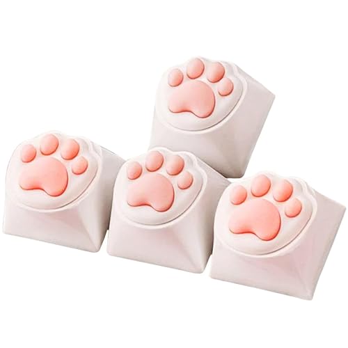 Silver & Styleのキーボード用猫デザインキーキャップ。MX軸互換、可愛い肉球モチーフで、シリコン素材のピンク色4個セット。カスタムキーボードに最適です。