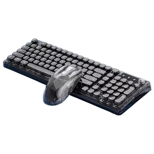 JQQJアイスキューブワイヤレスBluetoothキーボードとマウスセット。透明なデザインで、メカニカル構造。オフィスや在宅勤務に最適なサイレントタイプの特性を持つ。