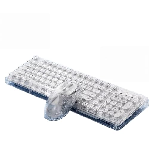 JQQJアイスキューブ透明ワイヤレスBluetoothクリスタルキーボードとマウスセットは、オフィスやプライベートに最適な静音機械式デザイン。スタイリッシュなホワイトカラー。
