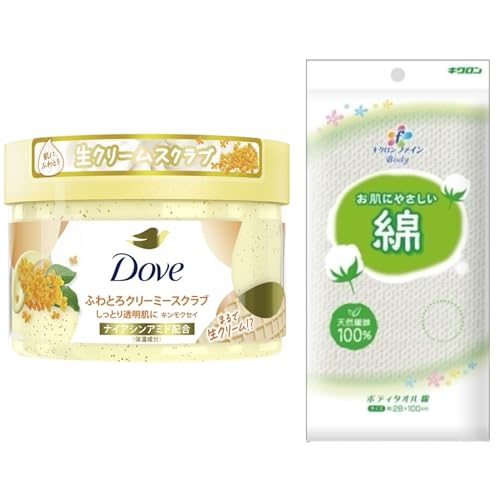 【セット品】クリーミースクラブ(キンモクセイ)とボディタオル綿の2点セット。しっとり洗浄効果で、やさしい肌あたりを実現。バスタイムケアに最適なアイテムです。
