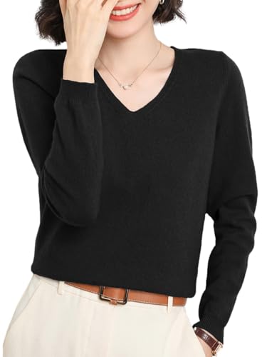 ビーエヌワンセレクトのカシミヤタッチニットは、洗濯機OKでアイロン不要。レディースのVネック長袖トップスで、きれいめなデザインが秋冬春に最適。カラーは黒、サイズはLです。