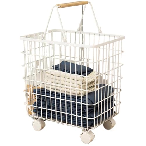 Riazdiwのランドリーワゴンは、1段構造の洗濯かご。サイズは40*28.5*43cmで、通気性に優れ、脱衣かごとしても使用可能。おしゃれなホワイトカラーで、ランドリー収納に最適です。