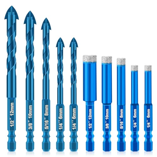 AOBOPLE ダイヤモンドホールソー 10本セットは、六角軸四刃設計でコンクリート、セラミック、ガラス、大理石、花崗岩、微結晶石などに適したビット。サイズは6/8/10/12mm。