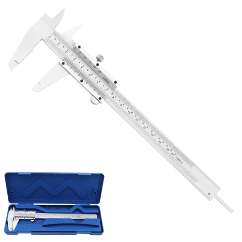 Smgda ノギスは150mmの精度0.02mmで、焼入れ強化炭素鋼製。内径、外径、深さ、段差測定が可能で、家庭のDIYや学校、機械、自動車の修理に最適。収納ケース付き。