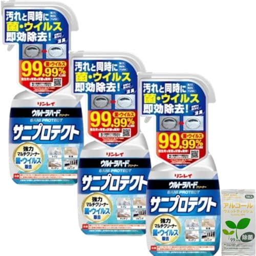 住居用強力クリーナー3個とアルコール除菌ウェットティッシュ2点セット。ウルトラハードクリーナーでしっかり清掃、サニプロテクトで衛生管理を支援。まとめ買いに最適!