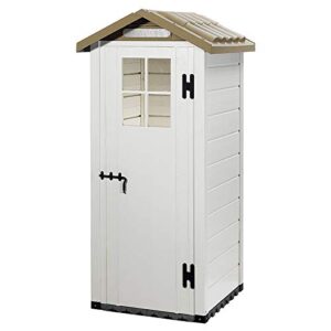【可動棚付き】物置 屋外 スチール 倉庫 戸外収納庫 幅153*奥行き206*高181 可動棚付き 物置き おしゃれ 大型 収納 屋外 ベランダ 防水 ドア 引戸 スチール ロック付き ガーデニング 庭【ホワイトグレー】の高価買取