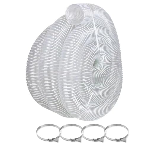 2-1/2インチ x 10フィートのフレキシブルクリアポリ塩化ビニル集じんホース。304ステンレススチールクランプ付きで、パンク耐性があり、店舗の掃除機用に最適です。