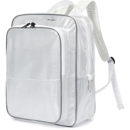 透明バックパック。帯電防止加工済みのフルPVC素材使用。防塵・防水機能を備え、クリーンルームや建設作業に適しています。サイズは40*30*20CMで、学校や通勤、旅行にも最適なユニセックスデザイン。