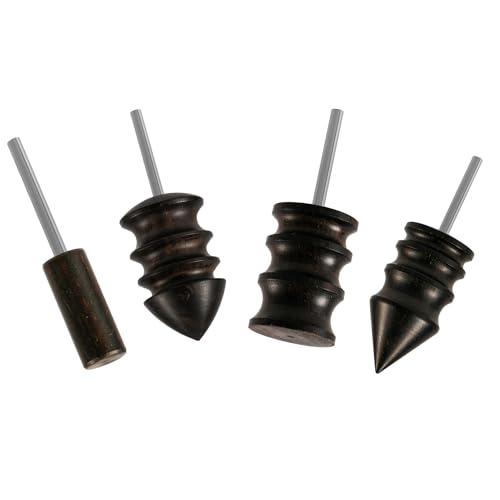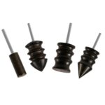 ロータリーツール用レザーバーニッシャービット4点セット。4スタイルのチップで、ポリッシュヘッドエボニー素材。レザーのエッジ処理に最適なアクセサリーです。