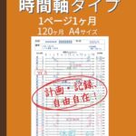 活動記録ノートは、1ヶ月を1ページで俯瞰し、時間管理をサポートするA4サイズのタイムラインジャーナルです。日付フリーで、仕事・勉強・趣味のタイムログに最適。10年分、120ヶ月分を記録可能。