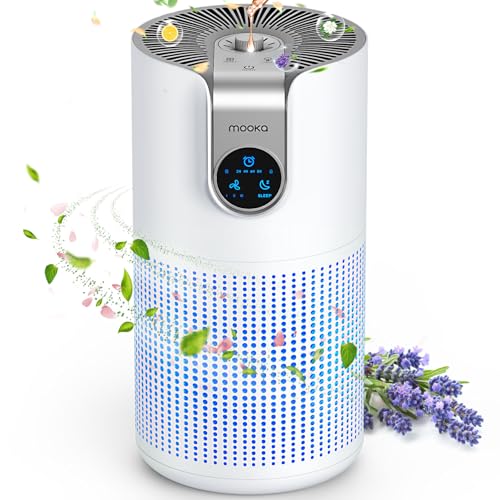 MOOKA LIFE 空気清浄機は30畳対応でアロマ機能付き。4段階風量調節、3重濾過システム、HEPAフィルター使用。除菌・脱臭効果あり、花粉やPM2.5対策にも最適。タイマー機能付きで省エネ設計。スリムで軽量、PSE認証済み。