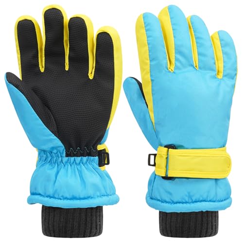 Aywylのスキーグローブは、防水・防寒仕様で、滑り止めと耐磨耗加工を施した子供用手袋です。紛失防止機能もあり、6-9歳向けの水色デザイン。