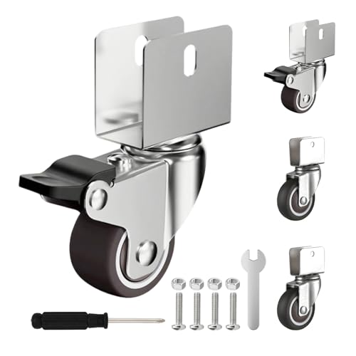 DEWEL キャスター U型 L型 1.25インチ 1.55インチの4個セット。小型で360度回転、静音設計、耐久性が高く、DIY家具や台車に最適な後付け用キャスターです。