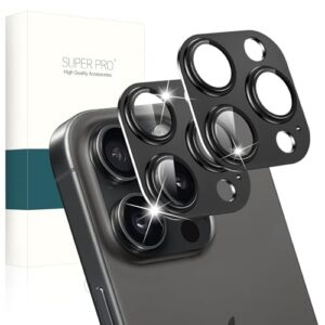 【日本旭硝子素材 + アルミ合金製】iPhone 15 Pro/iPhone 15 Pro Max 専用 カメラフィルム AR高透過率強化ガラス 一体型 耐衝撃 防爆裂 硬度9H キズ防止 露出オーバー防止 高透過率 気泡ゼロ ケースに干涉なし アイフォン 15 プロ/15プロマックス 用 レンズ 保護フィルム (ブラック * 2枚入り)