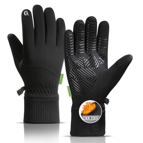 手袋 防寒 メンズ 冬 厚手 サイクリンググローブ 【暖炉のように暖かい・厚い裏起毛・スマホ対応】防寒グローブ 滑り止め 撥水 防風 紛失防止 アウトドア スポーツ 自転車 バイク ランニング 登山 釣り 通勤 通学 3サイズ 男女兼用 (ブラック, M) 高価買取中