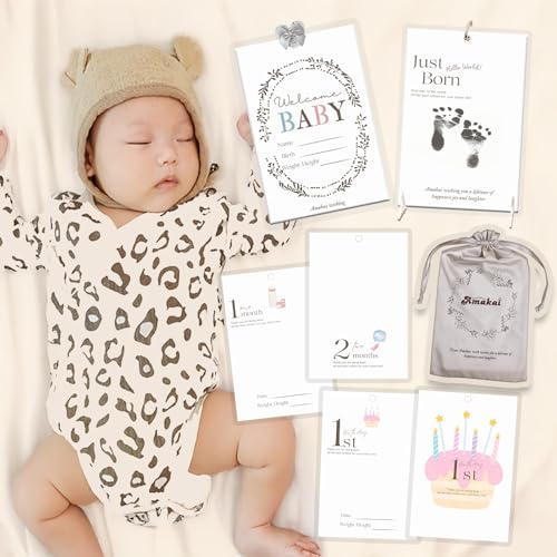 / Amakai マンスリーカード 足型 月齢フォトグッズ 手形 台紙 ベビー 月齢カード 手形 足形 台紙 リバーシブル 命名紙 手形 足形 リボンクリップクリアボード付き 安定感あり 収納便利 長期保管可能 0歳〜3歳 毎月の思い出 30種類15枚 出産準備 誕生日 ギフト