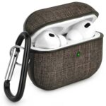 V-MORO AirPods Pro 3 ケース 2025 airpods Pro 3カバー エアーポッズプロ 第3世代 ケ ース キャンバス素材保護ケー ス 分離式 おしゃれ ワイヤレス充電対応 カラビナ付き LEDライト可視化 キズ防止 耐衝撃 軽量 防塵 紛失防止 持ち運び便利 (褐色, AirPods Pro 3 ケース) 高価買取中