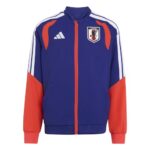 アディダスの2026年サッカー日本代表ジャケット、キッズサイズ150、ユニセックス。カラーはジャパンブルー(R1081 JZ7130)。軽量で快適、運動に最適なデザイン。