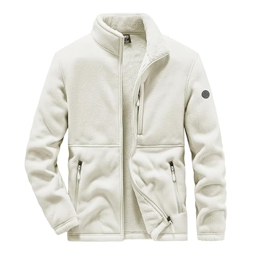 [Manatsulife] メンズ フリース 裏起毛 ジャケット アウター ポーラー フルジップジャケット 暖かい カジュアル アウトドア 立ち襟 裏ボア 保温 防寒 防風 秋 冬服 WT2268 (JP, アルファベット, L, ホワイト) 高価買取中