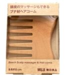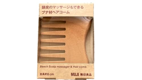 MUJIのブナ材ヘアコームは、静電気を防ぎ、髪に優しい天然素材で作られています。頭皮マッサージができるデザインで、スカルプケアやツヤ出しに最適です。