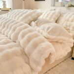 クイーンサイズ掛け布団セットは、冬用の暖かいスーパーソフトなフェイクファーで作られています。ふわふわのラビットベルベット素材を使用し、シーツ1枚、キルトカバー1枚、枕カバー2枚が含まれています。サイズは200X220cm、カラーはホワイトです。