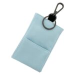 リール付きキーケースは、小学生のランドセル肩ベルトに装着可能。鍵の紛失を防ぎ、目立たないポケット型デザイン。カラーはスカイブルーで、カラリムピッケの製品です。
