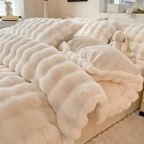 クイーンサイズ掛け布団セット(冬用)は、スーパーソフトなフェイクファーとふわふわのラビットベルベットでできており、寝具4点セット(シーツ1枚、キルトカバー1枚、枕カバー2枚)を含みます。サイズは180X200cmで、ホワイトカラーです。