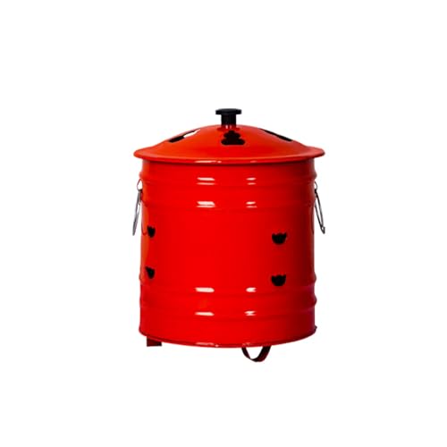 SOLLENT家庭用焼却炉 ステンレス鋼製 蓋付き 大容量 ドラム缶型 落ち葉・紙ごみ処理 三脚空気循環設計 火花防止 キャンプ 庭掃除無臭 ドラム缶焼却炉 農業用 屋外 防錆 耐熱 ハンドル付き 簡易焼却炉 防災 (直径48cm,レッド) 高価買取中