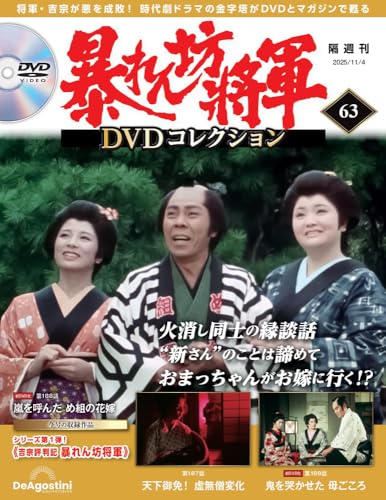 「暴れん坊将軍 DVDコレクション 第63号」は、吉宗評判記の第187話から第189話を収録したDVD付きの分冊百科です。サムライの活躍や人情物語が楽しめる内容で、懐かしの名作ファン必見のアイテムです。