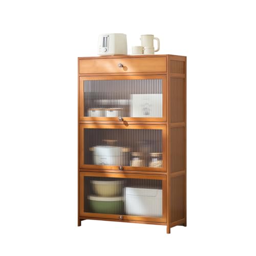 NYHGOXMの竹製キッチン収納キャビネットは、大容量で引き出し付き。軽量スライド扉、防塵設計の多段調味料ラック。省スペースでおしゃれな食器棚やサイドボードとして最適。サイズは高さのある3つドア、長さ70cm(ブラウン)。