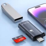 2-in-1マイクロSDカードリーダーは、USBポートとType-Cポートを備え、スマートフォンやPCに簡単にデータ転送が可能。コンパクトな設計で持ち運びにも便利。