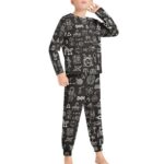 [ZKCASA] 科学柄 数学数式 物理 化学 方程式 パジャマ キッズ 長袖 上下セット 子供服 部屋着 ルームウェア 寝間着 男の子 女の子 寝巻き ジュニア 柔らかい 快適 150CM 高価買取中