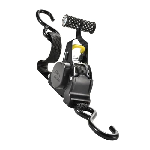 BinZyronicの格納式ラチェットタイダウンストラップは、自動巻き取り機能で簡単に荷物を固定できます。耐荷重設計で、安全に荷物を締付けられます。