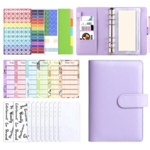 【ジッパー現金封筒付き】A6 予算バインダー 家計簿 財布 収納 マネーオーガナイザー PUレザー キャッシュエンベロープ ラベル付き 節約 貯金 費目管理 レシート整理 現金管理 手帳サイズ ラップトップ バッグイン コンパクト (グレー,シール+ジッパー袋*12+月間計画ページ*14+キャラクターシール+単語シール*2+ラベル紙)