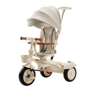 Neboka 三輪車 手押し棒付きベビーカー 子供用三輪車 折りたたみ 1~6歳 サンシェード付き 押し棒付き セーフティバー付き 安全ベルト付き 回転サドル 乗用玩具 持ち運び 簡単組立 コンパクト収納 子供用ベビーカー (クマ)