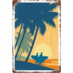 このブリキ看板はサーフィンデザインで、サイズは20×30cm。耐久性があり、屋外でも使用可能。ビーチやガレージの装飾に最適で、ノスタルジックな雰囲気を演出します。