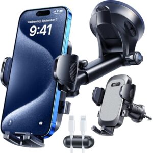 / Juyya スマホホルダー 車 吸盤&エアコン口 両用 スマホホルダー 安定性拔群 スマホスタンド 車 自由調節 360度回転 小型でもガチ安定 携帯ホルダー 車 カー用品 (ブラック+レッド)