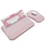 3in1キーボードスタンドセット ピンクは、モダンなデザインと優れた機能性を兼ね備えています。折りたたみ式で持ち運びも便利。高さ調整可能で、快適なタイピング環境を提供します。