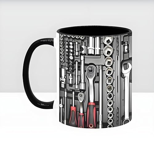 3Dプリントのユニークなツールボックスデザインのマグカップ。メカニックやDIY好きの男性に最適。11オンスのセラミック製で丈夫。誕生日、父の日、クリスマスプレゼントに。