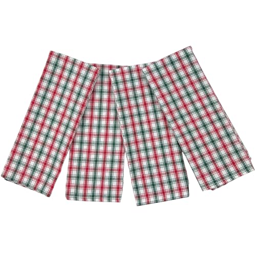 ホリデークリスマスキッチンディッシュハンドタオル4枚セット。100%綿製、レッド、グリーン、ホワイトのトラディショナルタータンチェックデザイン。サイズは63.5 cm x 38.1 cmで、キッチンにぴったりのアイテムです。