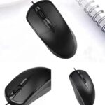 コンピューターとノートパソコン用の有線マウス。USB接続で、右利き・左利き両方に対応。シンプルなブラックデザインで使いやすさ抜群。